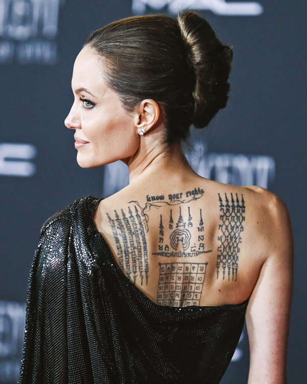 Güzel yıldız, filminin Los Angeles'daki prömiyerine siyah bir elbiseyle arzıendam etti. Hem özel hayatında hem de kırmızı halıda sıklıkla siyah giyen Angelina Jolie, Atelier Versace elbisesi içinde kum saati vücudunu gözler önüne sergi. İncecik, siyah metal zincirlerle dokunan bir kumaştan yapılan elbisenin bir kolu, tek yönden drape şeklinde beline kadar iniyordu. Belinde toplanan kumaşı ise 'Malefiz' rolüne gönderme niteliğinde Robert Procop imzalı büyükçe bir akrep broş süslüyordu. Saçlarını sıkı bir topuz olarak ensesinde toplayan yıldız, eyeliner'in başrolde olduğu iddialı bir göz makyajı tercih etmişti. Akrep broşu gölgede bırakmamak içinse minik pırlanta küpeler hariç başka mücevher takmamıştı. Los Angeles'ta uzun bir aradan sonra kırmızı halıya çıkan yıldızı, çocukları da yine yalnız bırakmadı. Güney Kore'de okuyan en büyük oğlu Maddox hariç, diğer beş çocuğu annelerini destelemek için yan yana kırmızı halıdaki yerlerini aldılar. Zahara'nın başta olmak üzere, tüm çocuklarının kıyafet seçimlerinin anneleriyle uyumlu olduğu gözlerden kaçmadı.
