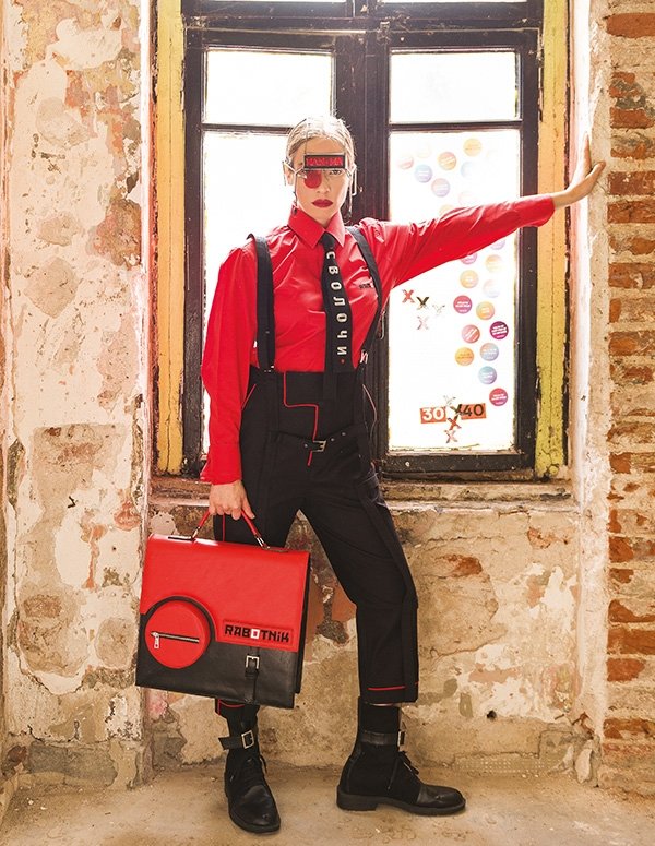 TASARIM SÜRECİMİ METOD OYUNCULUĞUNA BENZETİYORUM: KOLEKSİYONLA BÜTÜNLEŞMEK İÇİN SÜREKLİ KONUYA DAİR ŞEYLER DİNLİYOR, OKUYOR, İZLİYORUM. GENELDE KOLEKSİYON HAZIRLARKEN ARKASINDA GÜÇLÜ HİKAYE BİR HİKAYENİN OLMASINA DİKKAT EDERİM. ANLATMAK İSTEDİĞİM ŞEYİ KOLEKSİYONDA UFAK DETAYLARDA YA DA BAZEN BARİZ BİR ŞEKİLDE GÖSTERMEYİ SEVİYORUM. EN KÜÇÜK DETAYIN BİLE UYUM İÇİNDE OLMASI GEREKİYOR BENİM İÇİN. YARIŞMA İÇİN HAZIRLADIĞIM PARÇALAR DA BÖYLE GELİŞTİ. 'RABOTNİK' KOLEKSİYONUNUN KARAKTERİ AKSESUARLARDA GİZLİ. TEMANIN TAM ANLAMIYLA BİR ARAYA GELMESİNİ SAĞLAYAN PARÇALAR ONLARDI.