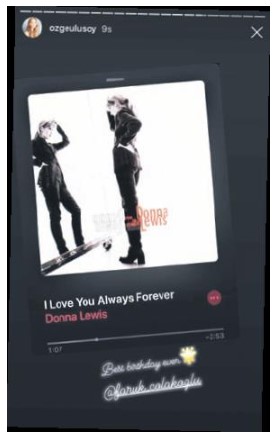 Özge Ulusoy, kendisine doğum günü sürprizi yapan iş adamına şu şarkıyla seslendi: ''"Seni sonsuza dek seveceğim / Birbirine yakın ve çok daha yakın / Her yerde seninle olacağım / Her şeyi senin için yapacağım." Ünlü model, bu şarkıyla da aşkına "evlilik" mesajı verdi.
