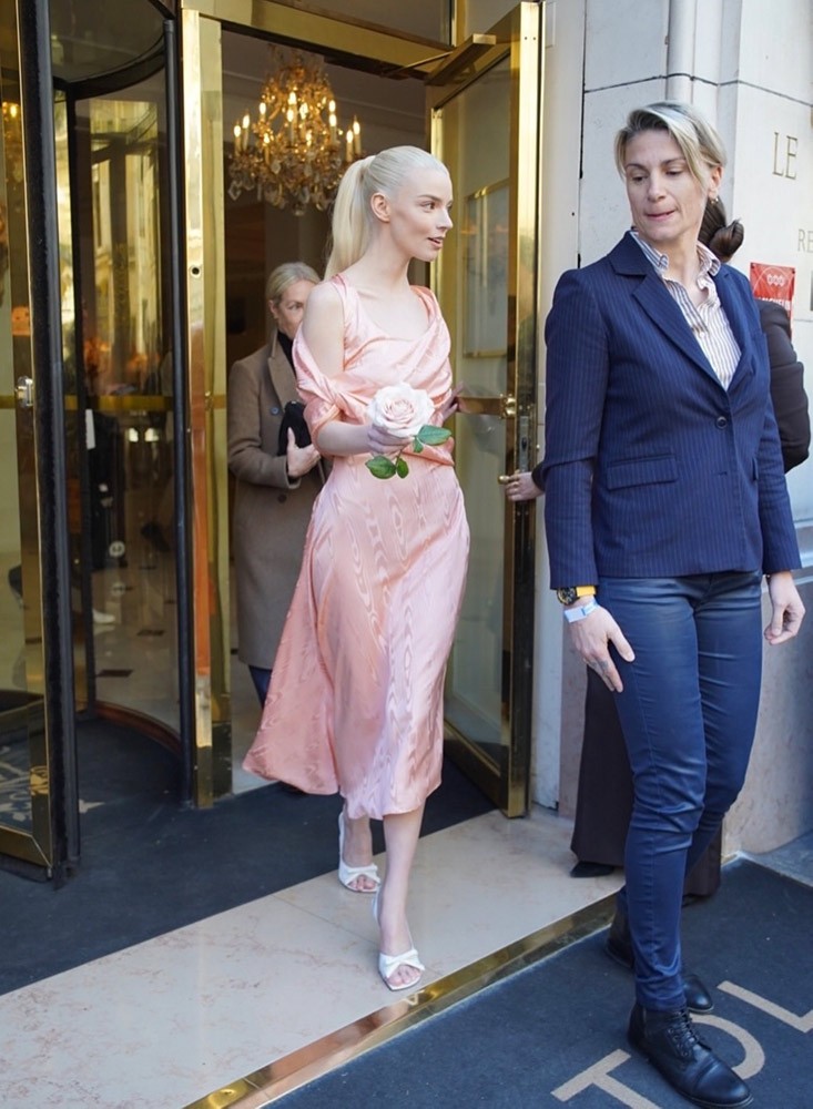 Pudra tonlarındaki drapeli elbisesiyle romantik bir silüet yaratan Taylor-Joy, gül detayıyla görünümüne zarif bir vurgu ekledi. Yumuşak geçişli makyajı ve sade saç tercihi ise stilini daha da sofistike bir noktaya taşıdı.