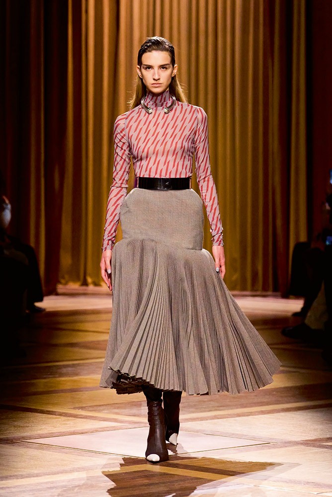 Paris Moda Haftası’nın dikkat çeken bir diğer trendi ise diz üstü çizmeler oldu. Güçlü ve iddialı bir siluet yaratan bu parçalar, özellikle sonbahar ve kış stilinin vazgeçilmezleri arasında yer alıyor. Diz üstü çizmeler, hem feminen hem de modern bir görünüm sunmasıyla öne çıkıyor. Mini elbiseler, kısa etekler ve oversize ceketlerle kombinlendiğinde stilin daha güçlü ve çarpıcı görünmesini sağlıyor. Tasarımcılar bu klasik parçayı farklı yorumlarla yeniden ele aldı. Bazı modellerde topuklu ve yapılandırılmış formlar öne çıkarken, bazı tasarımlarda ise daha rahat ve düz tabanlı seçenekler dikkat çekti.