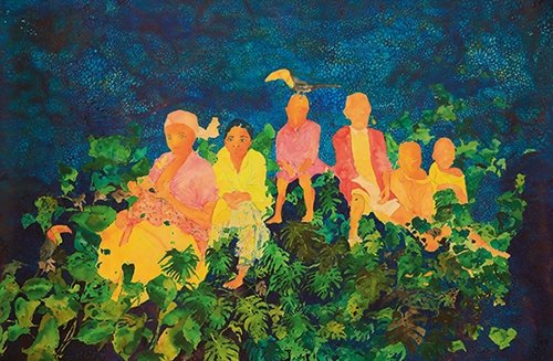 Fransızcası 'Bonne Nuit Mon Bébé', yani 'İyi Geceler Bebeğim'de çocuklarımla olan hikayelerimden yola çıktım. Onlar sayesinde kendi çocukluğumla karşılaştım, çocukluluğum tekrar yüzeye çıktı. Hem Bozcaada'da hem Réunion'daki ortak hikayelerimiz de katıldı ve hepsi birbirleriyle karışmaya başladı. Adeta rüya içinde rüya görmek gibi. Bu sergideki bazı resimlerde havada asılı kalmış kızlar bu hissi tasvir ediyor. Yüzlerce motif içinde rüyalar alemine yükselen kızlar hem beni hem kızımız Ada'yı hem de hayalperest dünyalarında derin ve huzurlu bir uykuya dalan bütün kadınları tasvir ediyor. 'İyi Geceler Bebeğim', aslında kadın olsun erkek olsun hepimizin bir iç dünya adasında yaşadığını, bu adaların birbirleriyle bağlantısı olmadığını, birbirlerimizin hayatına ancak denize atlayarak ulaşabileceğimizi, fakat zaman zaman adamıza çekilebileceğimizi ifade ediyor.