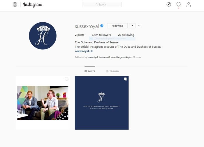 İngiltere Prensi Harry ve Meghan Markle, Prens William ve Kate Middleton'la olan haberleri ayrı yayınlamak için Instagram'da "Sussex Royal" isimli bir hesap açtı.