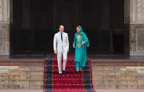 Resmi bir gezi için Pakistan'da bulunan Prens William ile Kate Middleton, önceki gün Lahor'daki Badshahi Camii'ni ziyaret etti.