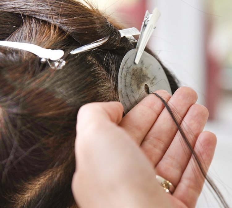 Burada hem kıl tekniği saç kaynak hem de lazer bant tekniği ile saç kaynak yapıyoruz. Ayrıca peruk saç hazırlıyoruz. Kıl tekniği saç kaynağında bağlantı yeri hiç belli olmuyor ama keratin kaynakta yarım santim filan dipte bağlantı yeri olur. Kıl teknikte hiçbir yapıştırıcı, görünen bir materyal yok.
