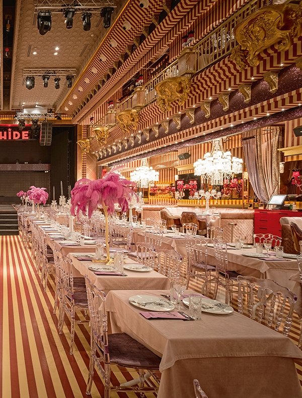 İstanbul'un ortasında bir eğlence sarayı yaratmaktı önceliğim. Sarayın askerleri tarafından korunan kilitli kapılar arkasında büyülü bir aşk hikayesi ile başladım bu hayale. Bu büyülü dünyayı yaratmak adına kullandığımız malzemeler, dokular ve aksesuarların hepsi bu mekan için özel olarak tasarlandı ve üretildi. Bazı objeler çıktığım seyahatlerden özellikle burası için topladığım aksesuarlar ve ilhamların ürünleriydi.