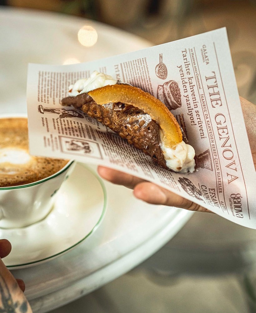 İstanbul’un en hareketli noktalarından biri olan Karaköy Bankalar Caddesi’nde yer alan Genova 1050, İtalyan kahve kültürünü şehir temposuyla buluşturan adreslerden. İsmini, geçmişte bu bölgede iz bırakan Cenevizlilerden alan mekân, kahve molasına tarih ve stil dokunuşu katıyor. %100 Arabica çekirdeklerle hazırlanan kahveler, espresso’dan latte’ye uzanan klasik seçeneklerle sunuluyor. Tatlı menüsünde öne çıkan taze cannoli, Genova’nın imza lezzetleri arasında yer alıyor ve kahve molasında en çok tercih edilen tatlılardan biri olarak öne çıkıyor. Kruvasan ve cheesecake gibi diğer tatlılar da bu deneyimi tamamlayan seçenekler arasında.