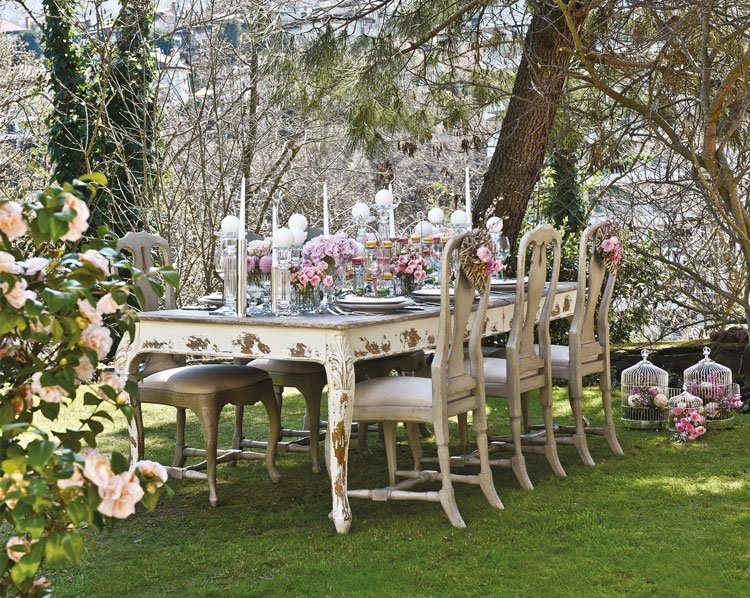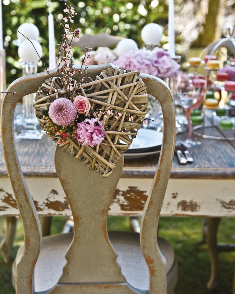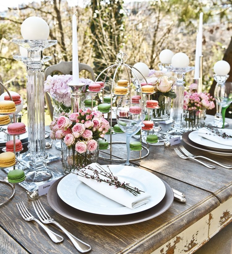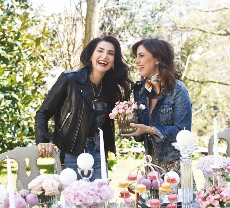 Cemiyet hayatının sevilen iki ismi Şirin Yalçın ve Rosella Karabacak, beyaz, uçuk pastel tonlarının kullanıldığı, renkli çiçeklerin coşkusuyla canlanan, kristal dokunuşlarla zenginleşen, rengarenk makaronlarla iştah açan romantik bir kır düğünü masası hazırladı. Kır düğünü konseptini doğanın uyumundan uzaklaşmadan yakaladıklarını anlatan Şirin Yalçın, düğün masasının olmazsa olmazlarının çiçek, şamdan ve mum olduğunu söylüyor ve ekliyor: "Masada çiçek çok önemli ve onların yerleştiriliş şekli de... Biz böyle masaya dağınık yerleştirilmiş olarak seviyoruz, kalıp gibi konmasını tercih etmiyoruz. Şamdan ve mumların da göz hizasını geçmemesi gerekiyor. Bol taze çiçek, bol mum ışığı, ışıltı ve tabii ki samimi sohbet bir masada mutlaka olmalı." Rosella Hanım masada romantizmi çok ağırlıklı tuttuklarının altını çiziyor ve kır konsepti olduğu için dikkat ettiği detayları şöyle anlatıyor: "Romantizmi anımsatan uçuk, pastel tonları kullandık, küçük kuş kafeslerinin içine renkli çiçekler yerleştirdik. Doğanın dokunuşunu masada her alanda görebilirsiniz, mesela üzerinde sadece çiçek dalı bırakılmış peçeteler..." Bu güzel, canlı çiçek tasarımlarının mimarı ise Natura Karma.