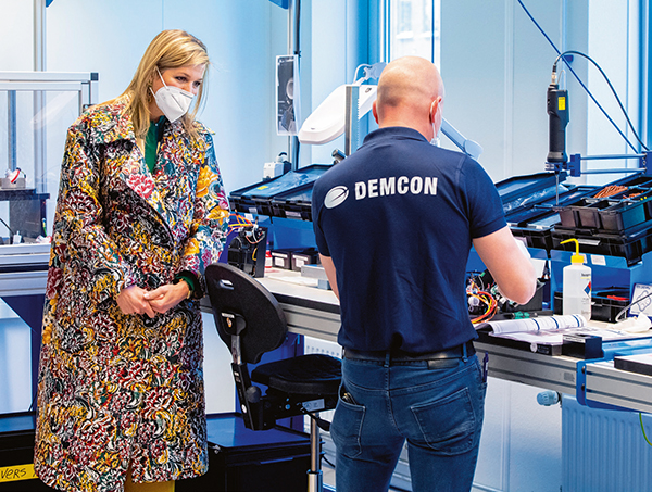 Hollanda Kraliçesi Maxima, Hollanda'nın Enschede şehrinde yer alan bir teknoloji şirketini geçtiğimiz günlerde Covid-19 gelişmeleri için ziyaret etti. Yoğun bakımdaki korona hastaları için yeni bir ventilasyon sistemi geliştiren şirkete giderek, uzmanlardan teknolojiyi dinleyen Kraliçe Maxima, uzmanlarla tek tek konuşup, makineyi yakından inceledi.