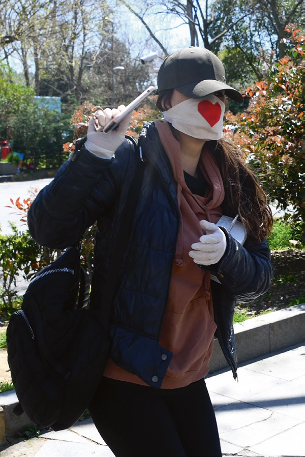 Eski model Ebru Destan, Bebek'te objektifimize yansıdı. Kalpli maskesiyle dikkatleri üzerine çeken Destan, "Arkadaşlar sosyal mesafemizi koruyalım lütfen. Malum evde çocuklarım var" diyerek uzaktan selam verdi ve yoluna devam etti.