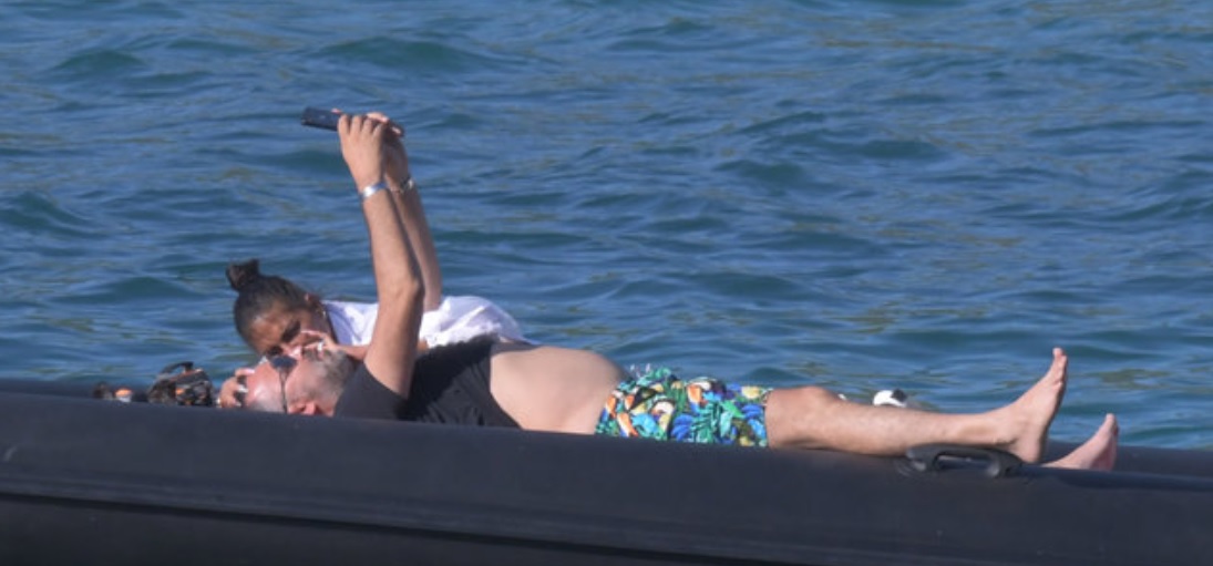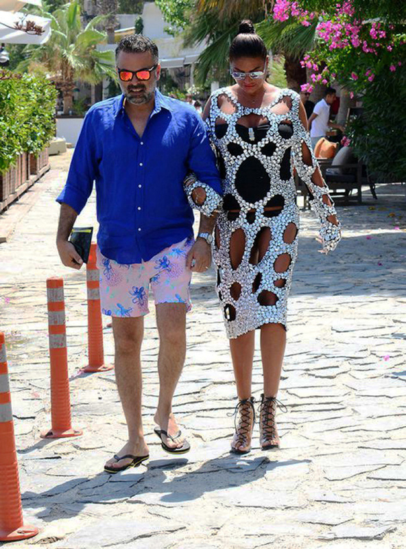 Denize girmek yerine botta keyif yapan sosyetik çift, daha sonra bir otelde yapılan tavla turnuvasına katıldı.