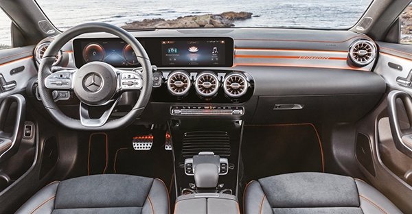 Gergin bir yayı andıran omuz çizgisi, bunu tamamlayan tavan çizgisi ve çerçevesiz camlar yeni CLA'ya tamamen özgün, sportif ve şık bir karakter kazandırıyor. Aracın, direksiyon kumandaları, kapı kolu kumanda paneli, orta konsol ve de koltuk kumandaları ile kabin içindeki tüm kumanda elemanlarında ileri teknoloji ve avangart temalar yer alıyor. İç mekandaki mimaride yenilikçi ve modern konsol tasarımı öne çıkıyor. Tamamen dijital olan gösterge panelinin üzerinde ilave bir çıtaya gerek duyulmayan mimaride sol kapıdan sağ kapıya kanat şeklinde kesintisiz ve akıcı bir hat uzanıyor.
