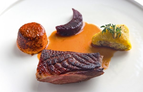 Ördegi iki halde kullanıyoruz. Bir tanesi sous vide (basınçta pisirme) teknigiyle; vakumda 65 derecede yaklasık 50 dakika pisiriyoruz. Kalan bacaklarını zeytinyagının içerisine gömerek, mum ısıgı diye tabir ettigimiz ısıda pisiyoruz. Yanında da glikozu çıkmıs pancar, fındık, eksi patates ve mürdüm erigi sosu ile servis ediyoruz.