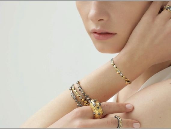 Tasarlanan parçalar; 24 ayar altın mikron kaplamalı rodyum'dan oluşurken, kimileri yüksek kalite zirkon, kimileri yarı değerli taş, kimileri ise ham elmas ile bezeniyor. Ve zamansız mine ile renklendiriliyor