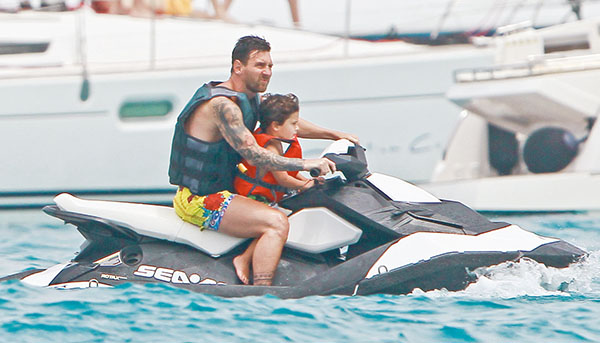 Ünlü futbolcu Lionel Messi, zorlu geçen ligin ve kupa maçlarının ardından ailesi ile birlikte ultra lüks teknelerinde tatillerine başladı. Ibiza'da demirli olan lüks yatlarında görüntülenen Messi, çocuklarıyla adeta çocukluğuna geri döndü. Tüm gün denizde oyunlar oynayan Messi, daha sonra oğlu Thiago ile birlikte Jet-Ski keyfi yaptı.